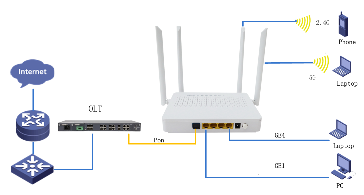 Support fast transmission of hardware NAT Hardware Specifications         interface: 1* G/EPON+4*GE+2.4G/5.8G WLAN